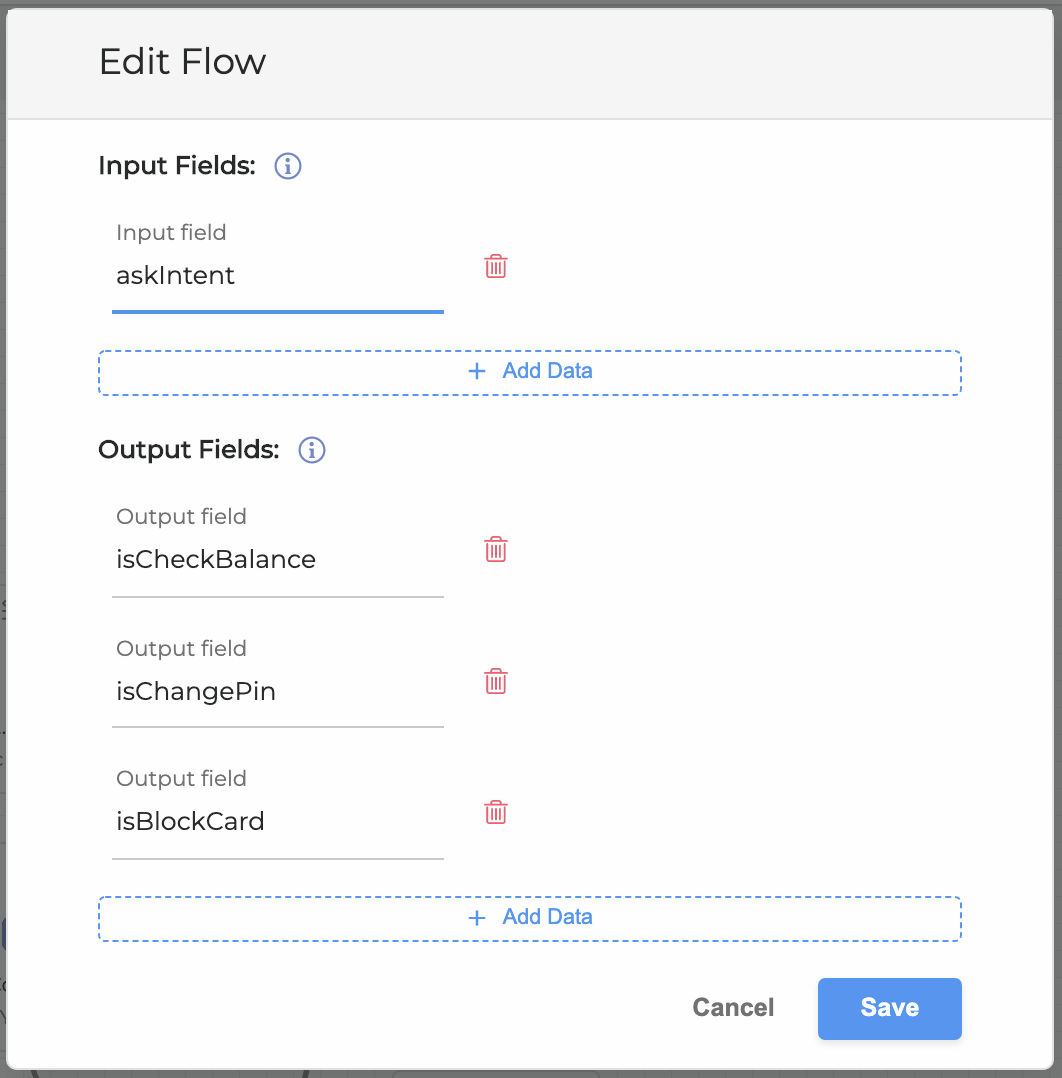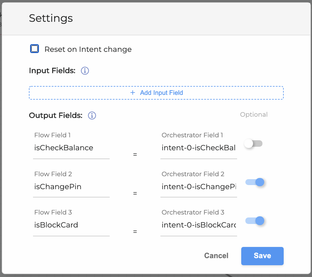 The values of Input and Output fields will be available in other building blocks of the Dialog Application.