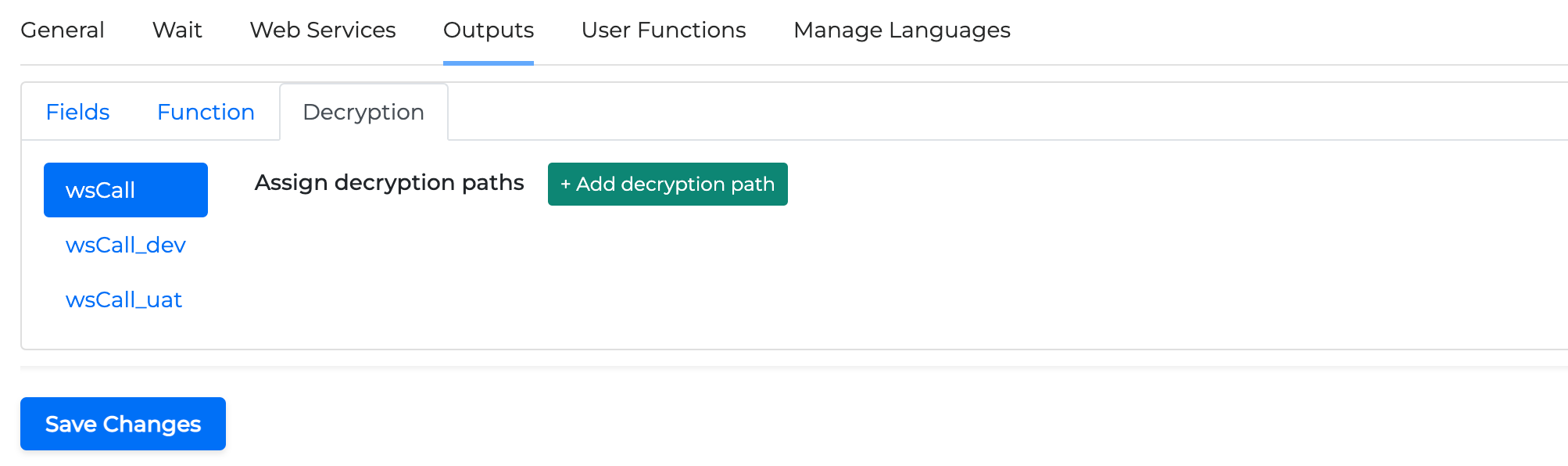 In the Decryption sub-tab you can set to get the encrypted data from your endpoint and decrypt it when, for instance, announcing it to the user. To do that you need to add a decryption path. For more information please read Encryption Profiles, Add decryption path .