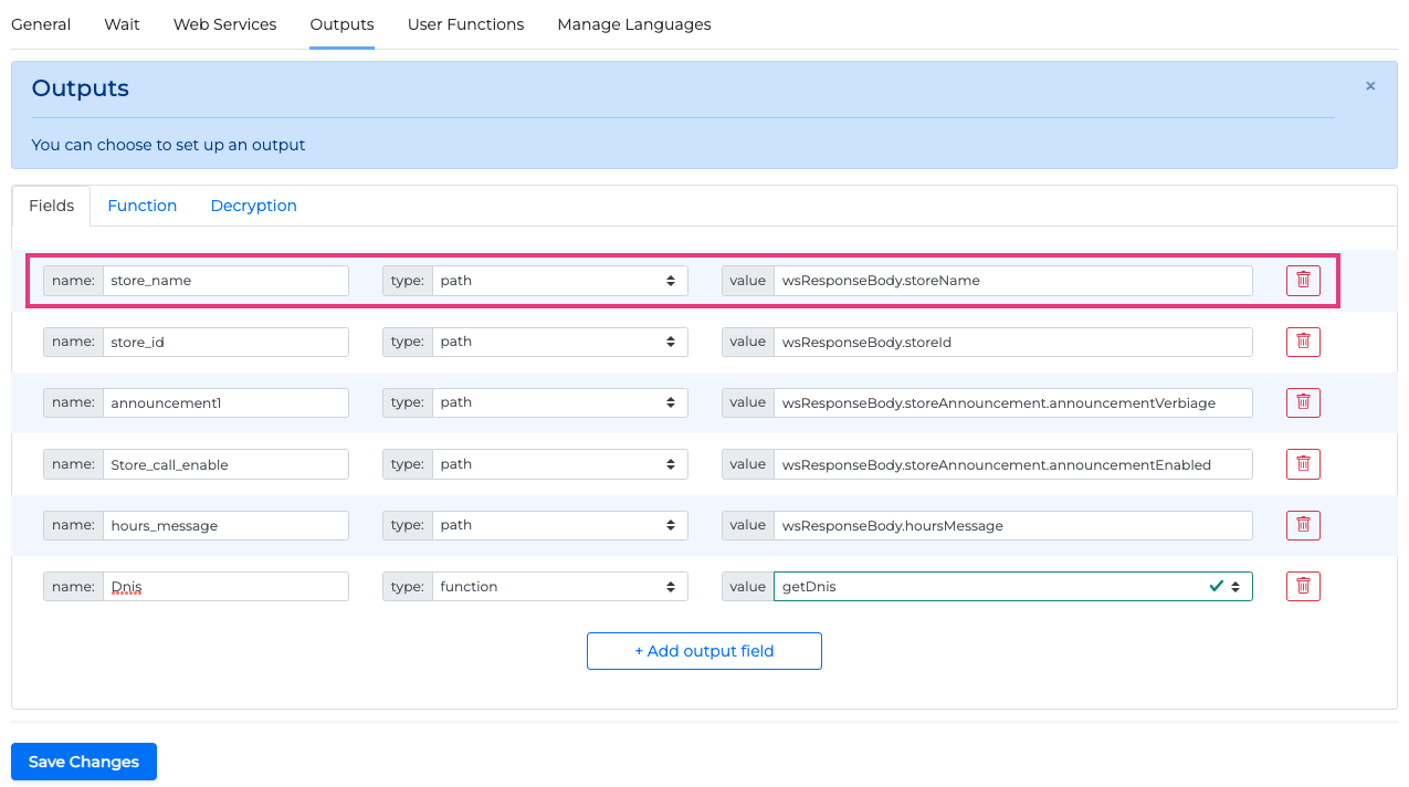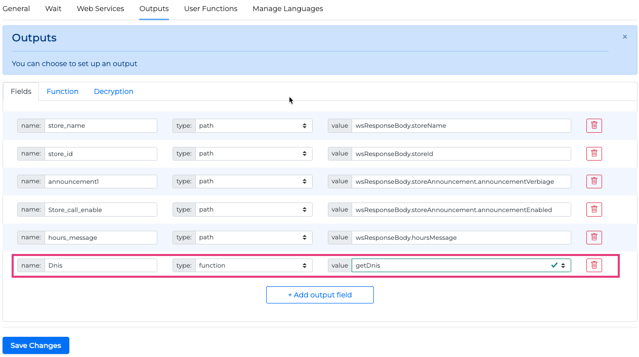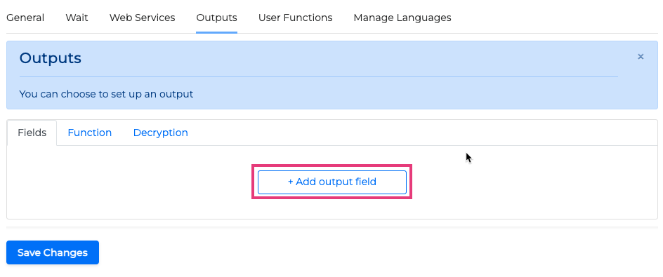 Click the +Add output field button to add a new output field.