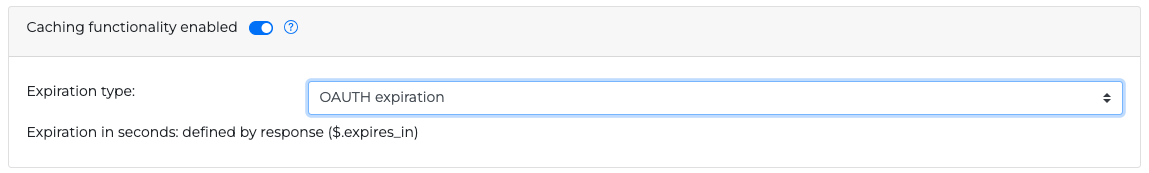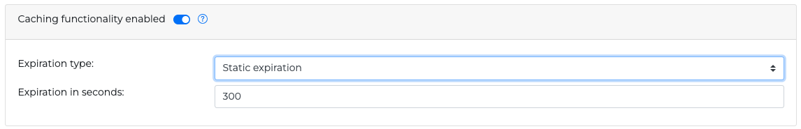 After enabling the Caching functionality from the corresponding toggle button, you can set the expiration time of the cached response with two methods that can be selected from the Expiration type dropdown list: