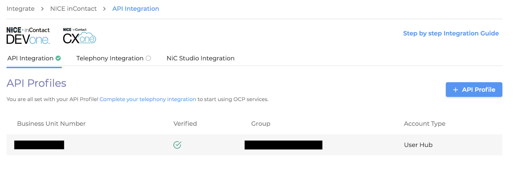 The functionality to delete an existing API profile (pictured above) is not available, in order to guarantee a safe workflow and to avoid deletion of an API profile used by an application others might be using. If you are sure you need to delete the API profile, contact our Customer Support by any convenient means described in the Omilia Care (Support Center) section, and we will assist you further.