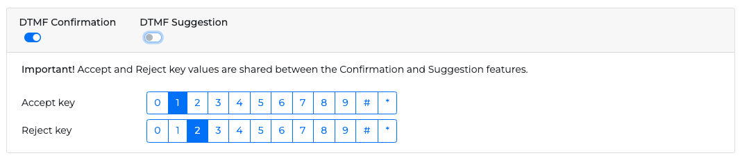 Exclusively for Intent miniApps it is possible to set a DTMF key for Acceptance and Rejection answers.