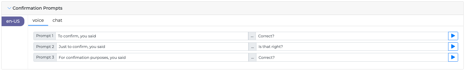No Responseor aNo Interpretationevent.Prompt 3: Rephrase after 2nd error (No Response, No Interpretation), it handles cases where you want to re-prompt for a second time to the caller, for example, if there was a
