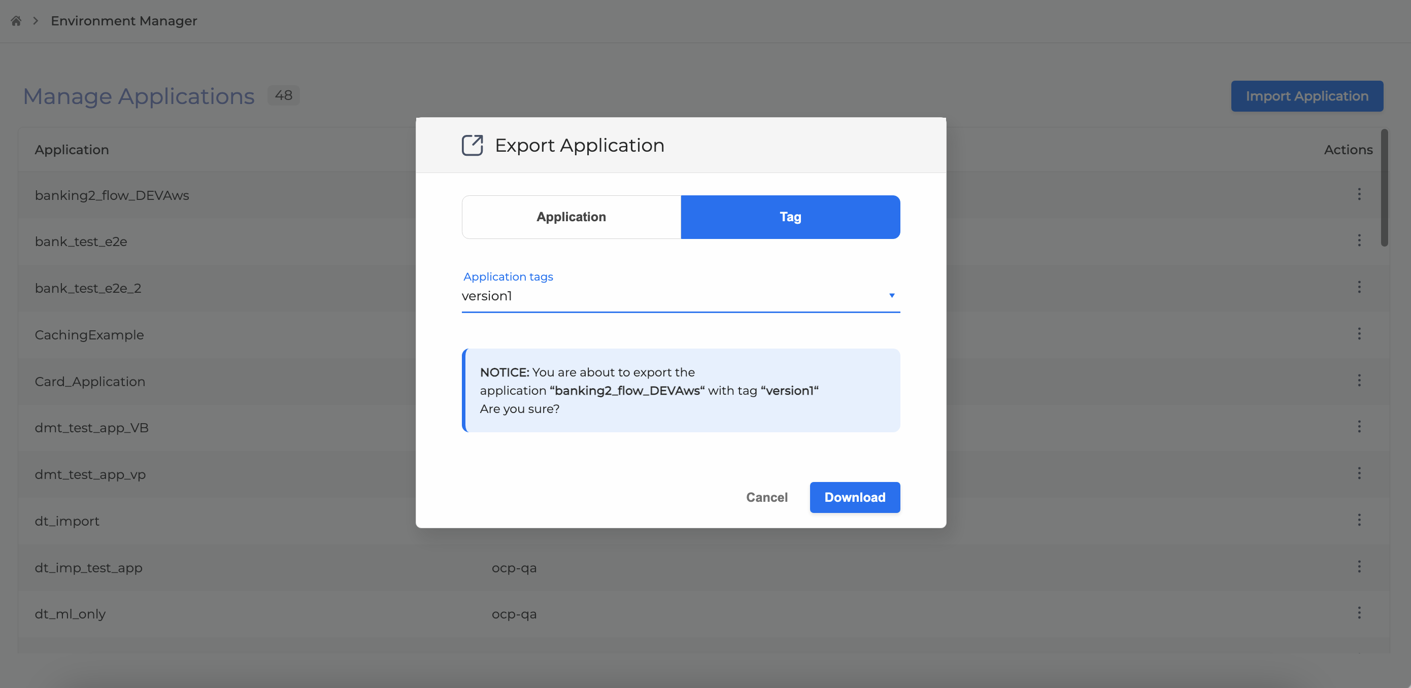 In this section, you will find detailed instructions on how to import and export an Application or Application Tag between different groups or environments. Additionally, you will learn the steps to promote an Application effectively.