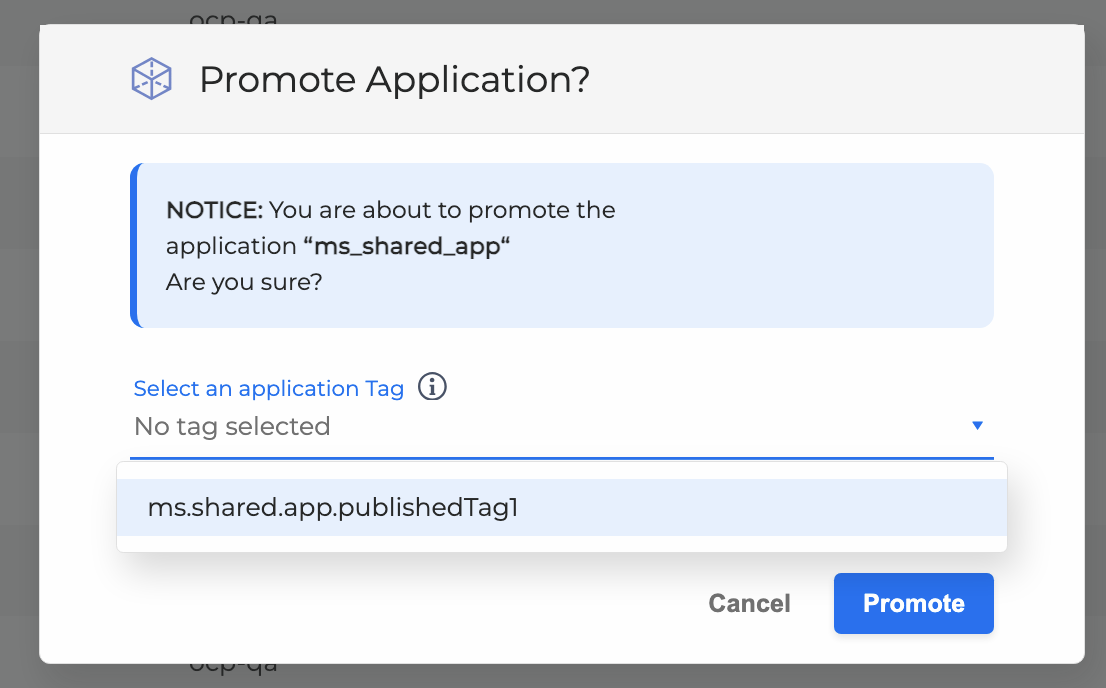 You may select an Application Tag from the dropdown list of the available ones (optional). Otherwise, you can promote the application by not selecting any tag.