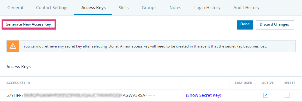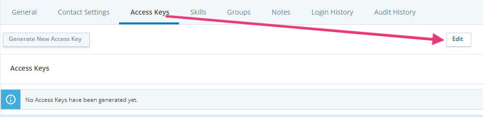 2. Click on the user/employee with admin role and select the Access Keys tab. To generate a new access key, click Edit: