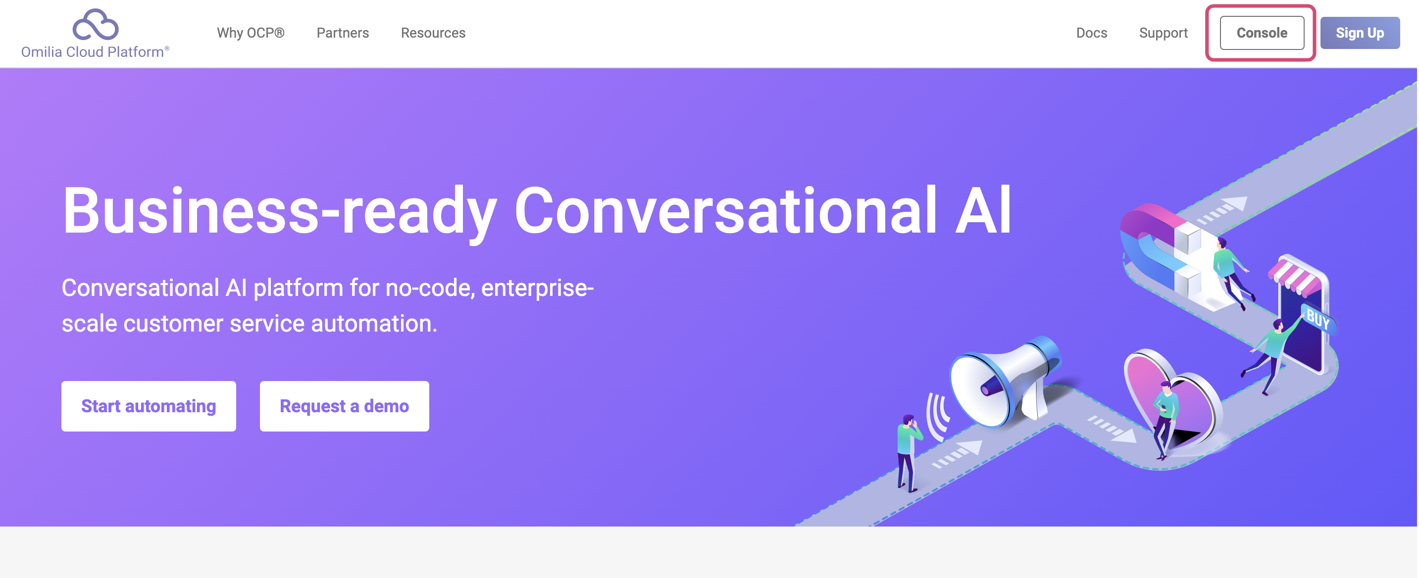 Navigate to https://ocp.ai/ and click Console, which is a unified entry point for managing all OCP® services.