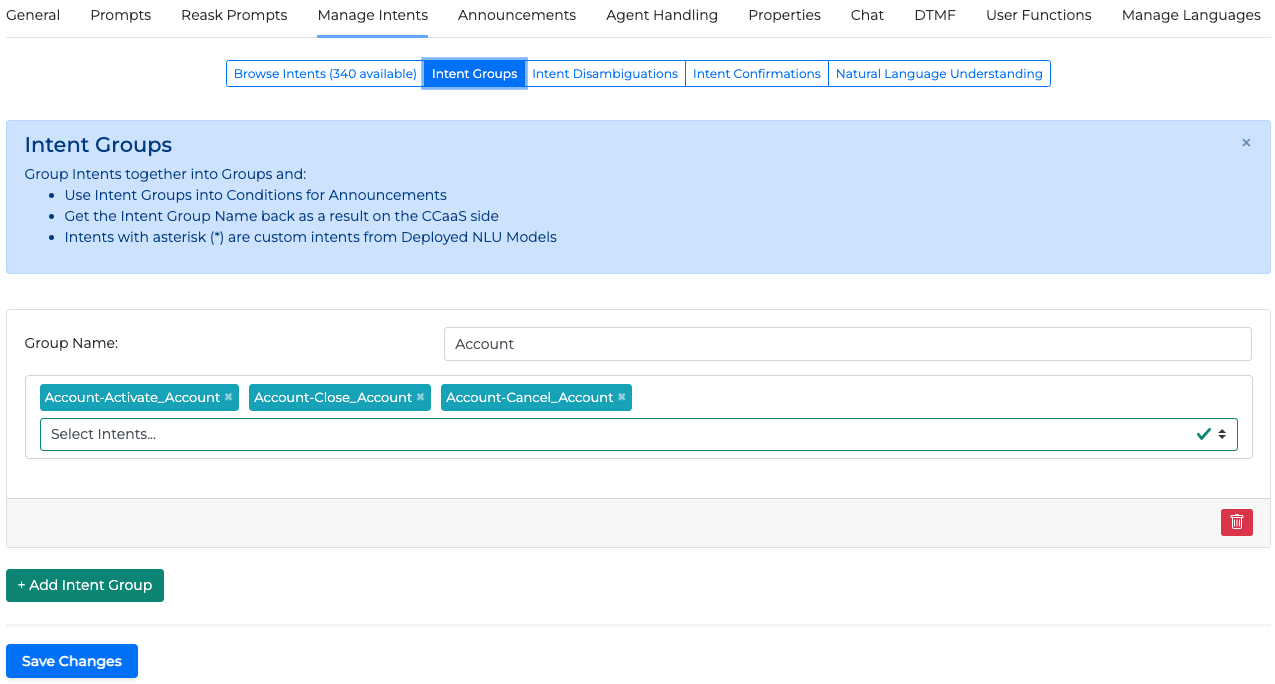 Get the Intent Group Name back as a result on the CCaaS side (this is not applicable for the standalone version)