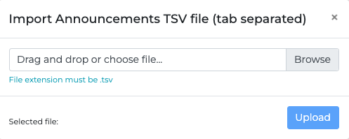 To import announcements from a .tsv file, select the Import Announcements button.
