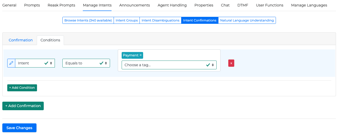 Use Intent Groups into Conditions instead of single intents for Announcements, Intent Disambiguations and Intent Confirmations