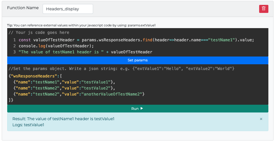 const valueOfTestHeader = params.wsResponseHeaders.find(header=>header.name==="testName1").value;