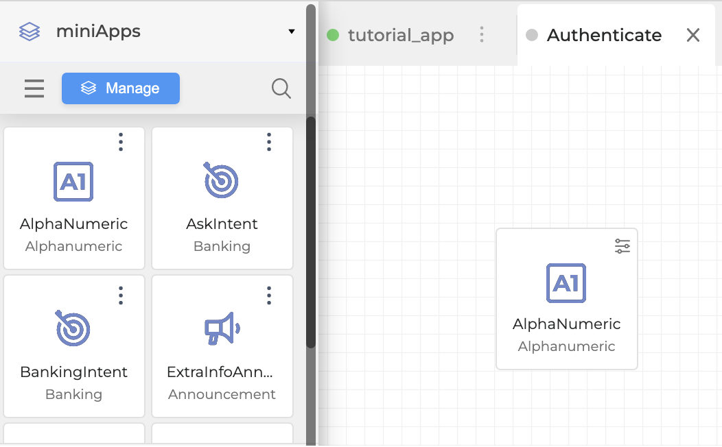 5. Select a miniApp from the miniApps list and drag and drop it into the canvas. Note that now you are working inside the Flow.