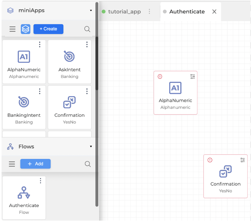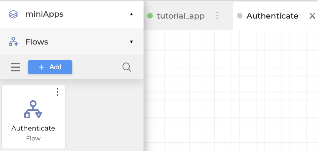 8. Select or create a second miniApp just like you did in the Getting Started section. Note that now you work inside the Flow.