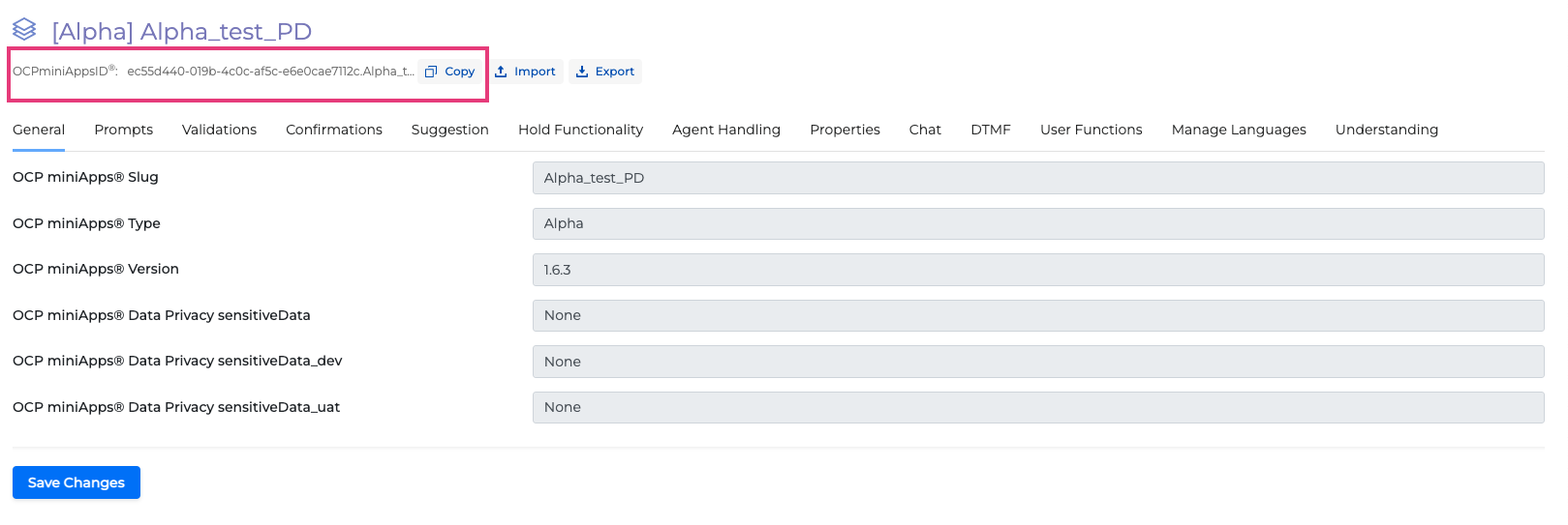To find your miniAppID go to your miniApp, in the General tab. There you can see and copy the