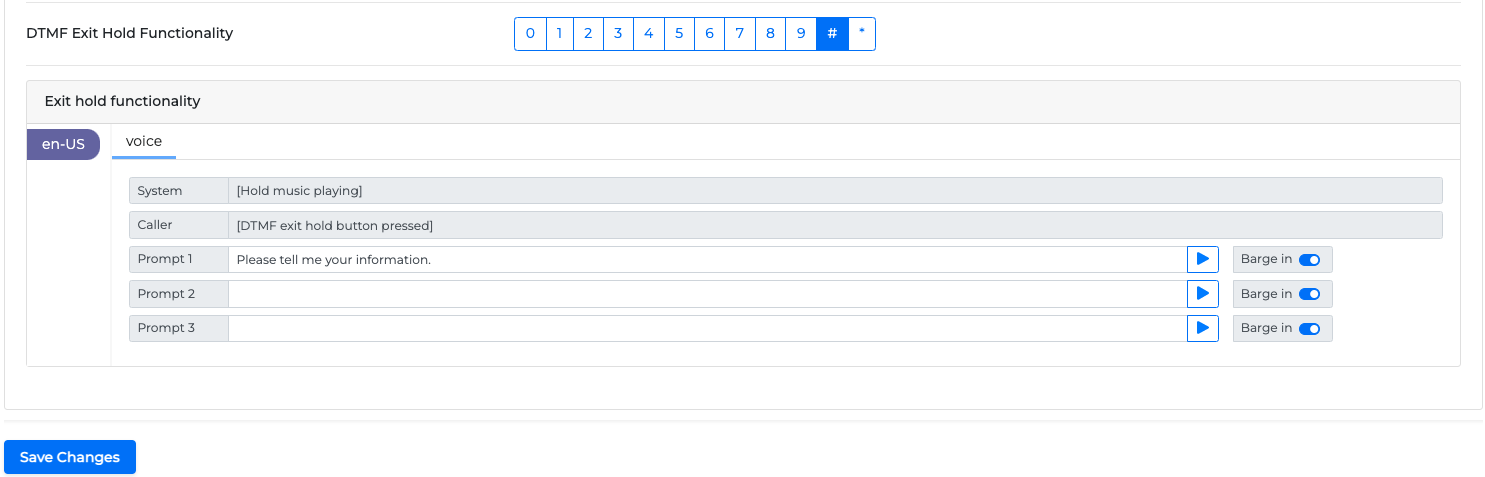In the DTMF Exit Hold Functionality, you can select which key the caller can press to exit the hold.