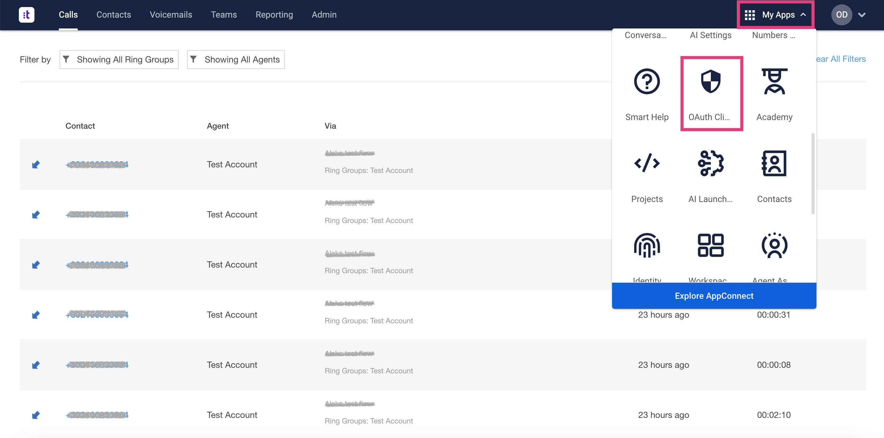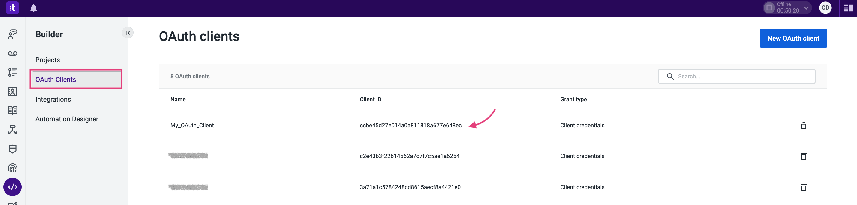 Alternatively, you can navigate to Talkdesk Atlas and select Builder → OAuth Clients as shown below.