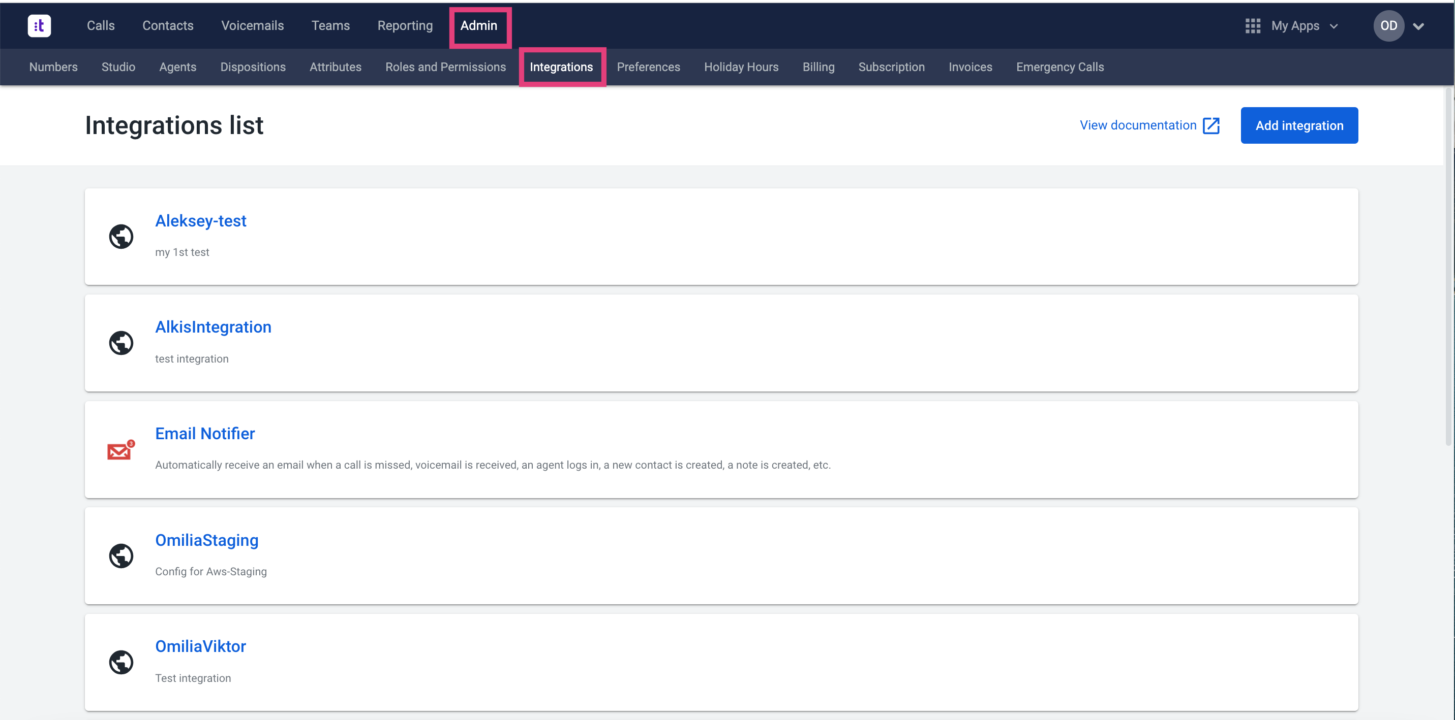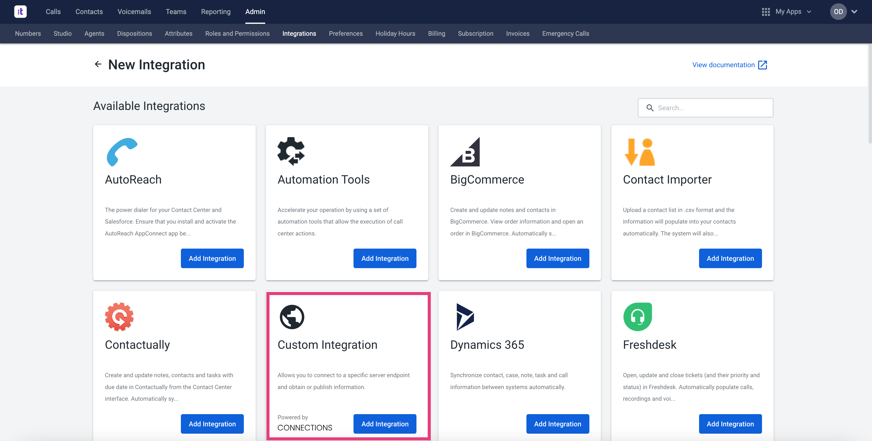 Alternatively, you can reach the Integrations tab from your Talkdesk Atlas account. In this case, select Builder → Integrations as shown below.