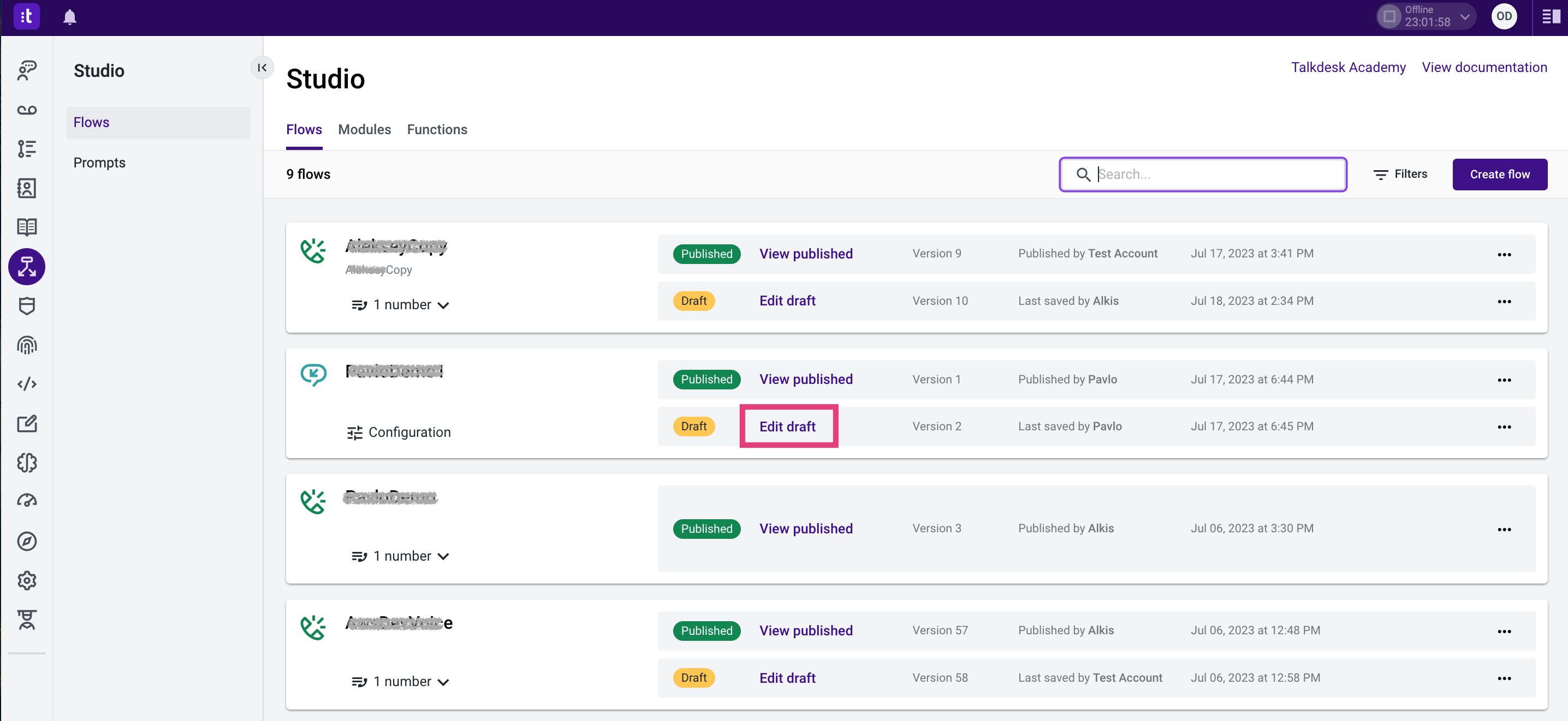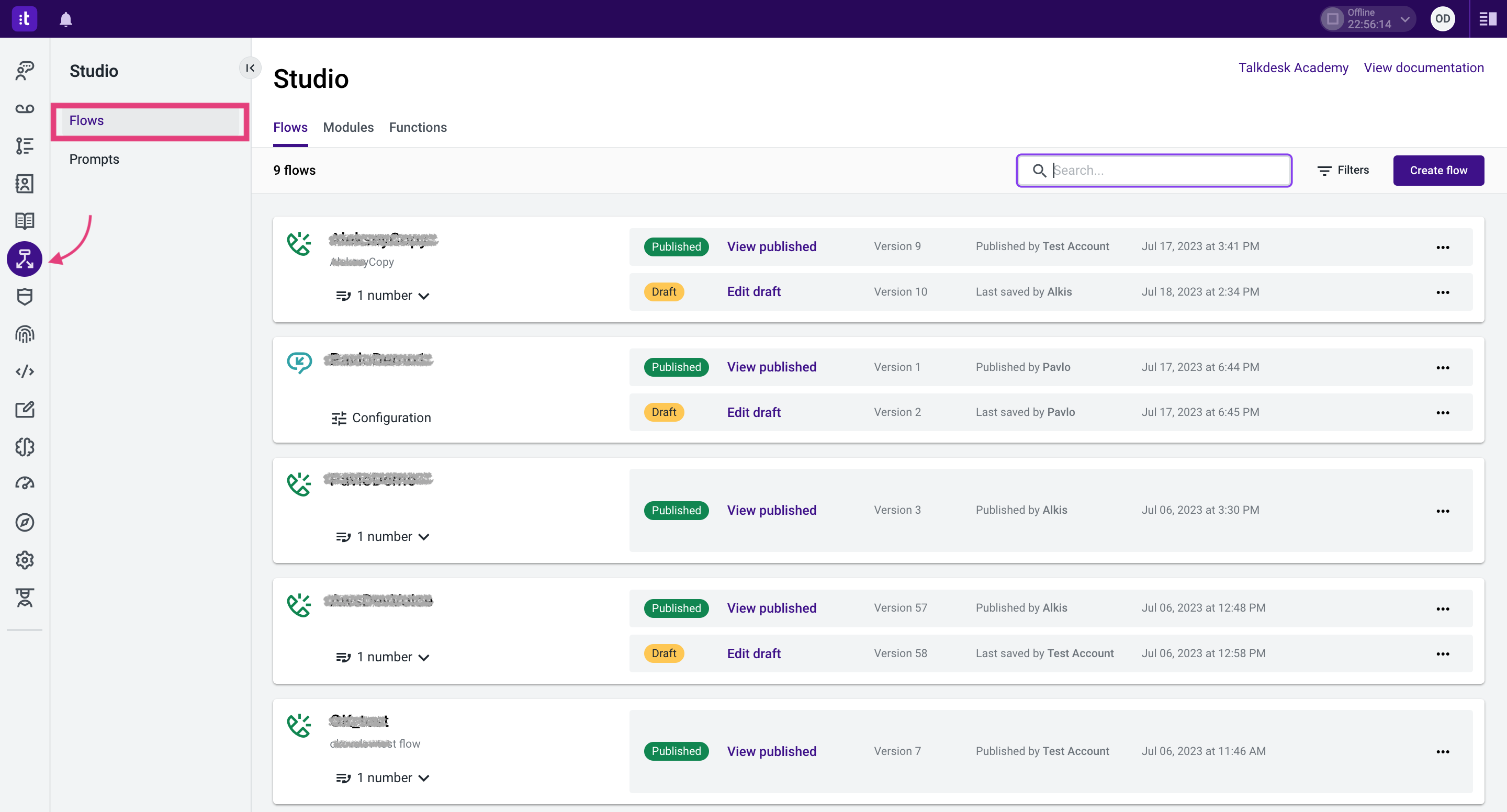 Before configuring OCP® integration with Talkdesk, make sure you have created a Flow in Orchestrator and a Studio Flow in Talkdesk.
