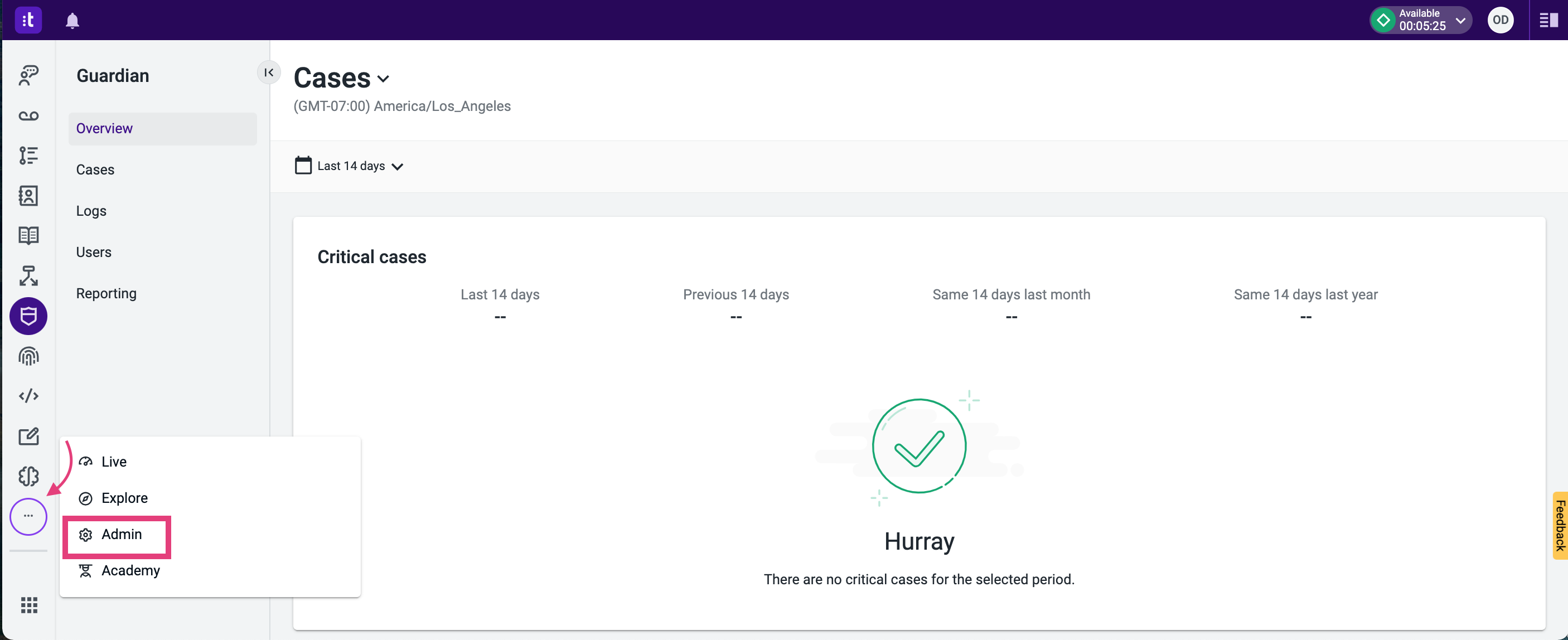 If you cannot see the Admin icon, it is hidden. In this case, click the Meatball menu icon and select Admin as shown below.