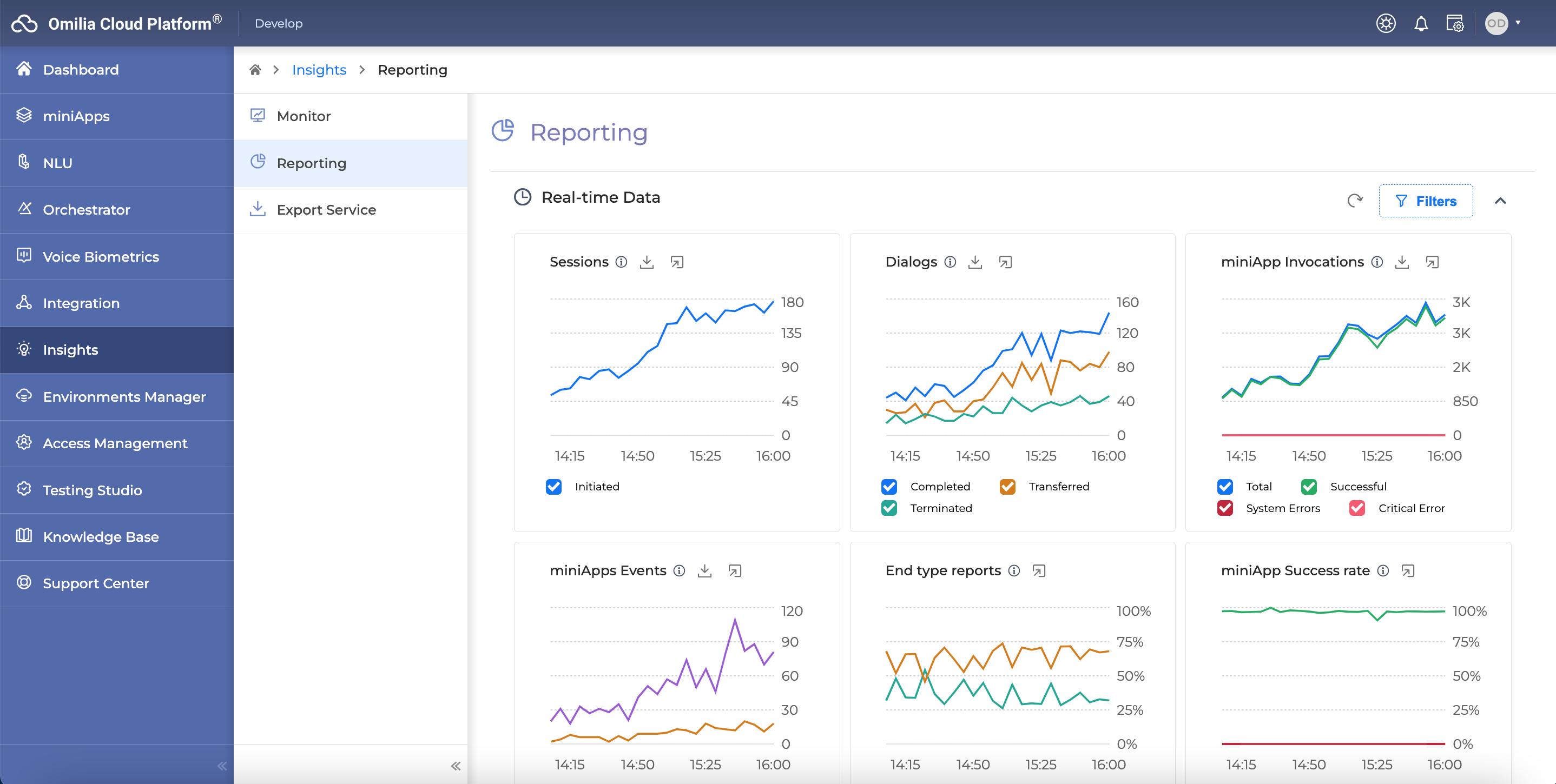 OCP® Reporting is an extensive reporting and analytics system providing graphical dashboards illustrating key performance metrics. Its purpose is to highlight opportunities for continuous improvement of the Virtual Assistant and offer profound insights into customer conversations. The generation of these reports is entirely system-driven and doesn't require human analysis. For more information, refer to the OCP® Reporting User Guide.