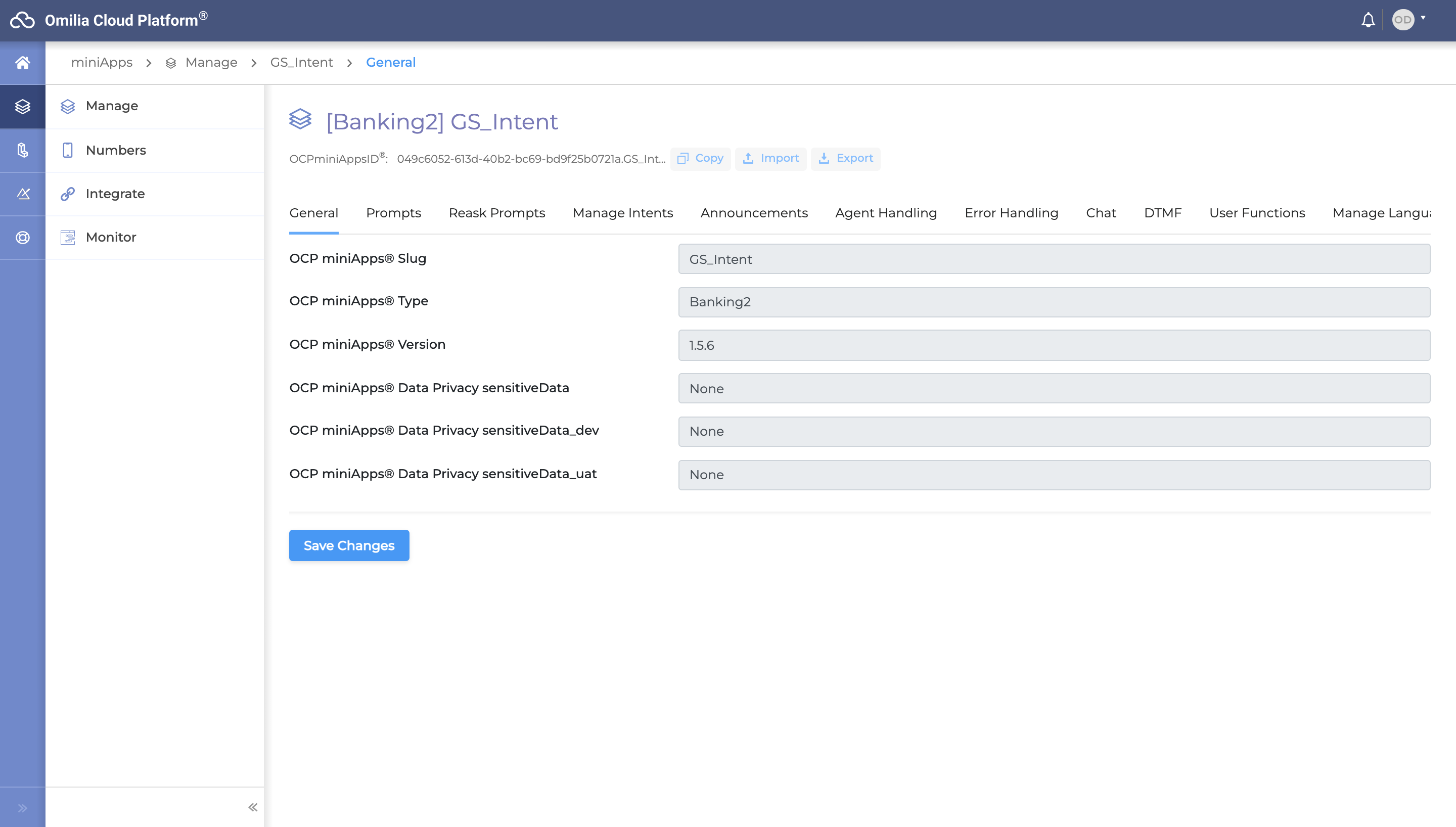 OCP miniApps® are the essential elements of your OCP®-based Conversational AI solution. The miniApps are designed to be user-friendly, requiring no coding knowledge, no maintenance, adaptable to your needs, and ready for instant deployment. They are natural language dialog units that manage one specific task, for example: asking for an address or credit card details, comprehending a call recipient's purpose, delivering information from a flexible knowledge base, or even arranging a meeting. More information on OCP miniApps® can be found in OCP miniApps® section.