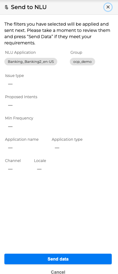 Send to NLU and generate a new NLU application for review before production. Existing intents will receive additional utterances, and suggested new intents will also be added to the NLU application.