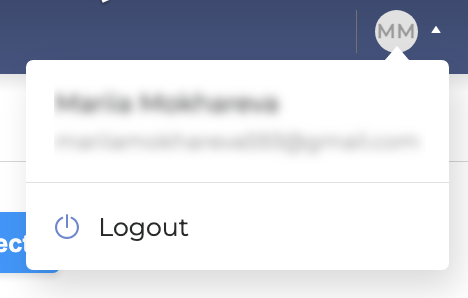 To log out from Testing Studio+, click the User icon and select Log out: