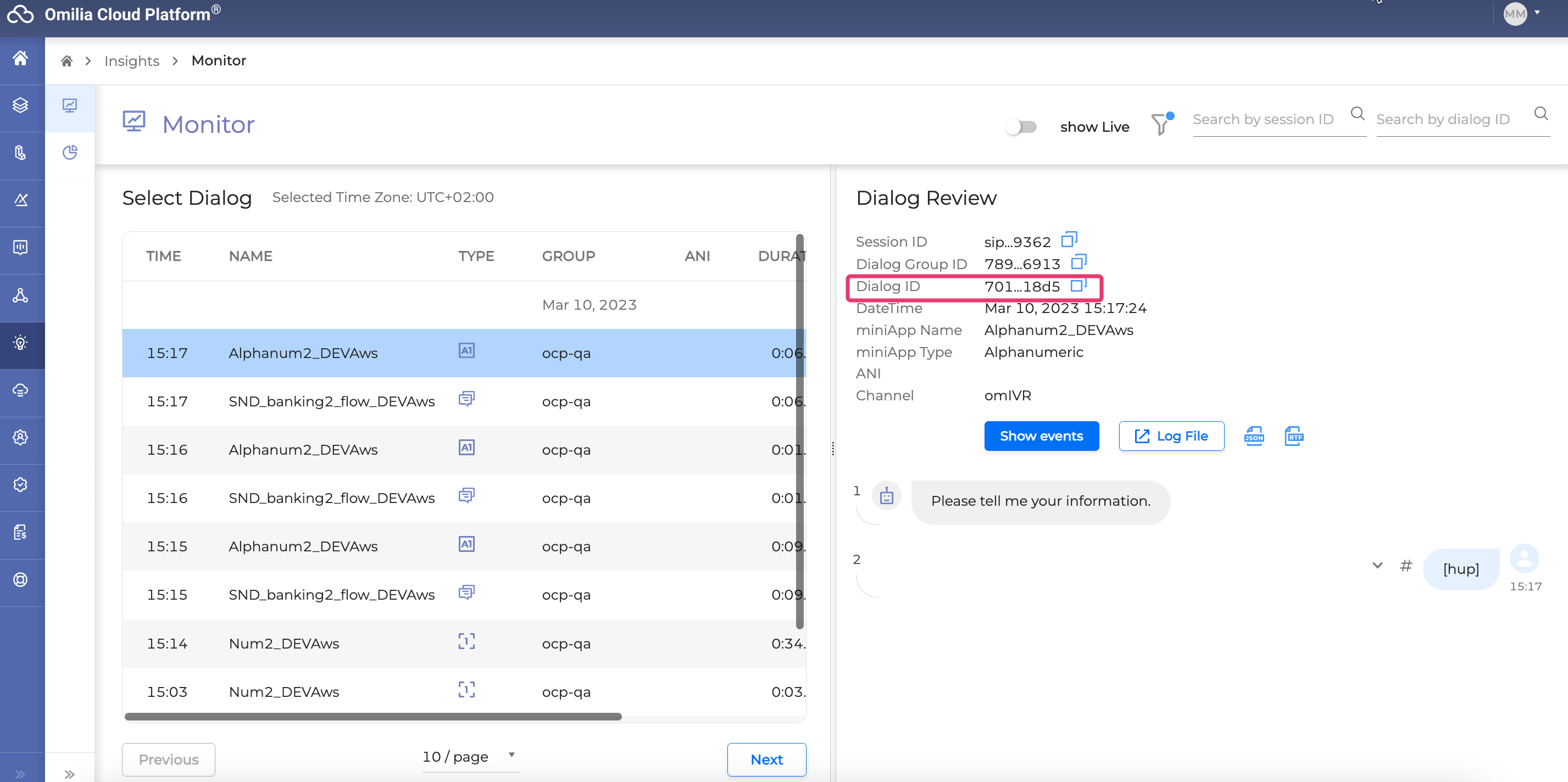Thus, you will be forwarded to the Dialog Review in Monitor as shown on the image below. For more information, check up Monitor User Guide.