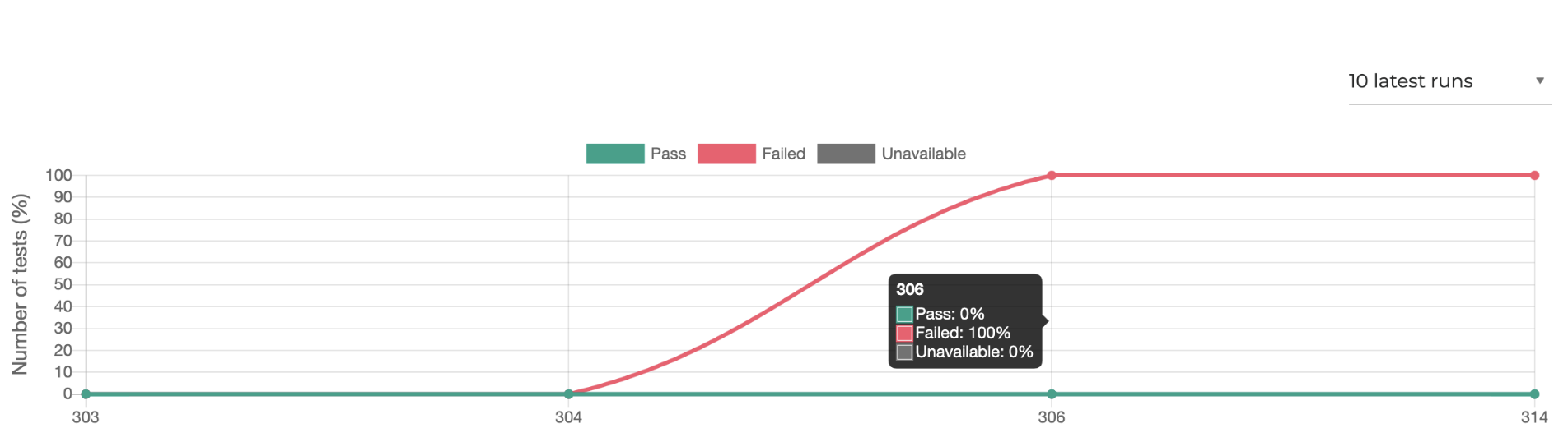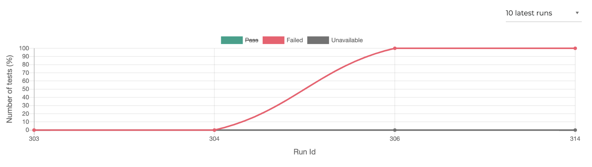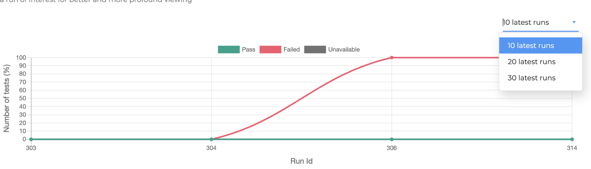 By default, the result of 10 latest runs are shown. You can can change this option by selecting 20 or 30 latest runs from the dropdown list: