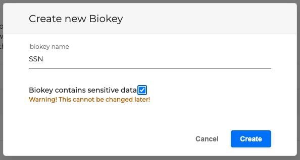 If the biokey contains sensitive data, it must be declared at this stage as this field is not editable later.