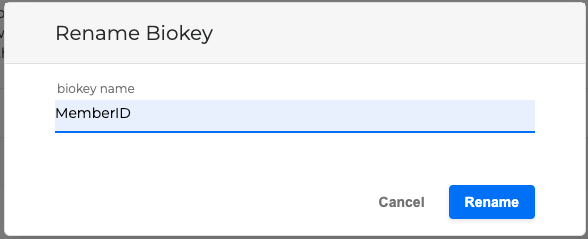 If you choose to rename, add the new biokey name in the popup window and click the Rename button
