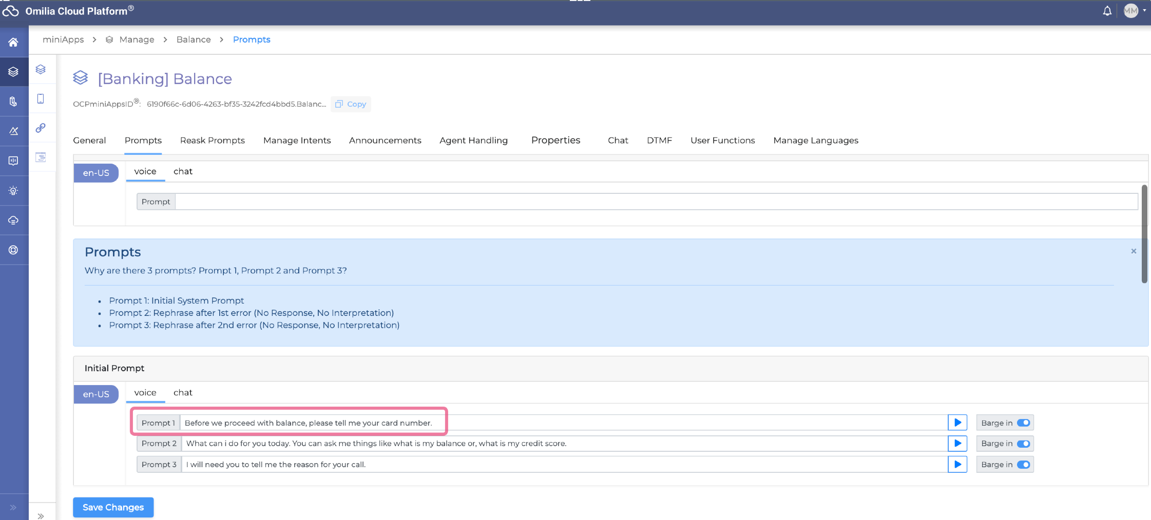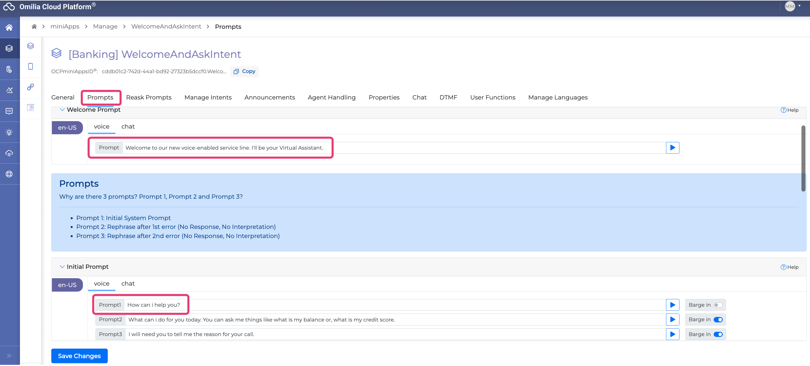 Create and configure a welcoming miniApp that contains a “How can I help you?” prompt. Don’t forget to save your changes when finished.